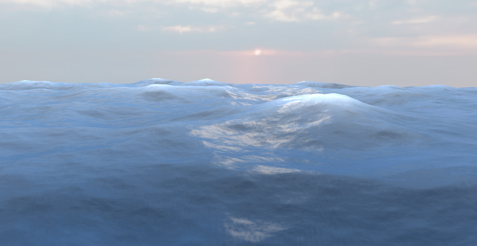 With the many parameters that go into the wave sampling and calculations this also allowed for lots of stylistic control. With this capability, I was able to port the ocean to another scene pretty well.